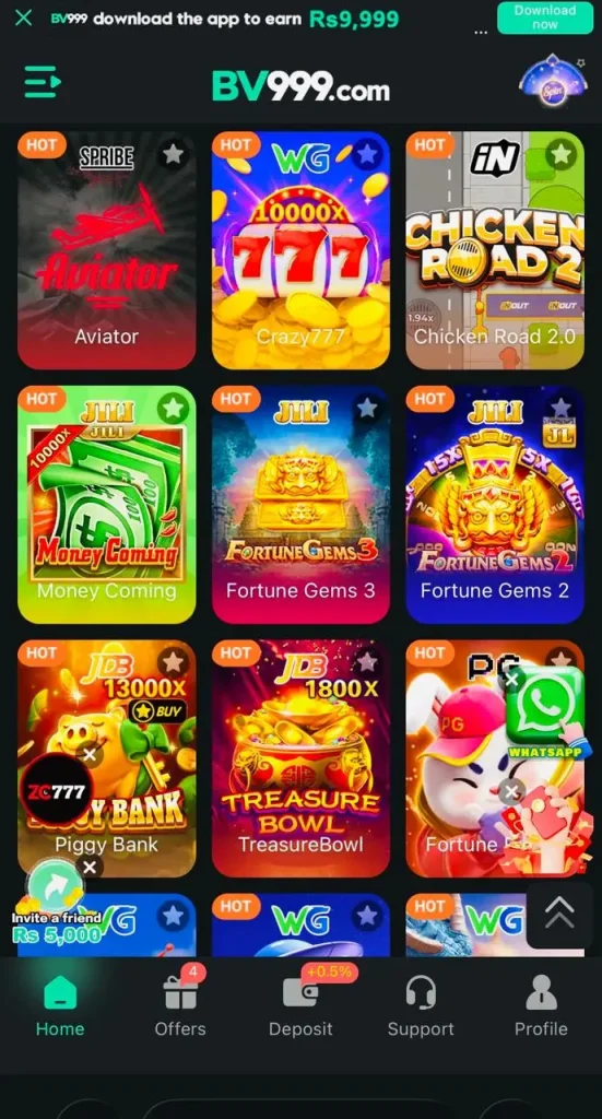 BV999 is an online gaming app that allows users to play different games and earn real money based on gameplay and luck.