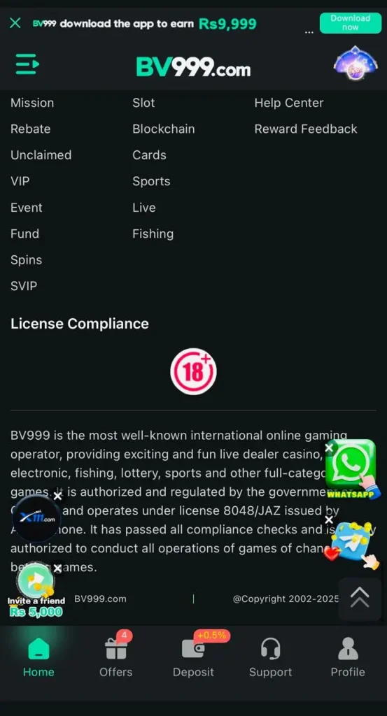 BV999 provides account security features, but users should always protect their login details and play responsibly.