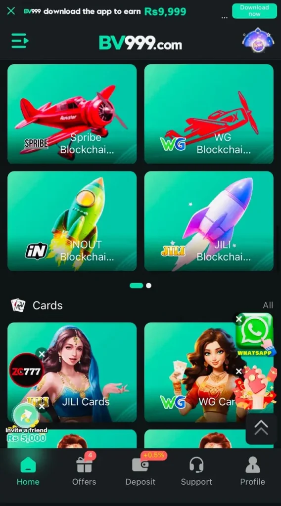 BV999 Game offers a diverse selection of games, including both modern and classic card options. The platform also features popular desi games such as Teen Patti, Andar Bahar, and Ludo, specially added for local players. This wide variety of games makes it easy for users to find and enjoy their favorite options without any hassle.