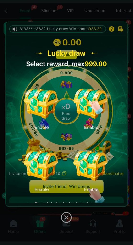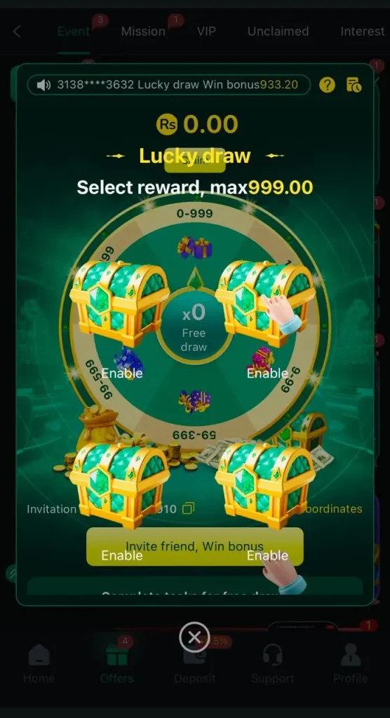 Players can enjoy multiple rewards and benefits, including free chips and bonus offers. Upon registering on the app with your phone number, you receive a generous welcome bonus. In addition, the platform offers VIP bonuses, free spins, and a refer-and-earn program, giving users more opportunities to play and earn extra rewards.